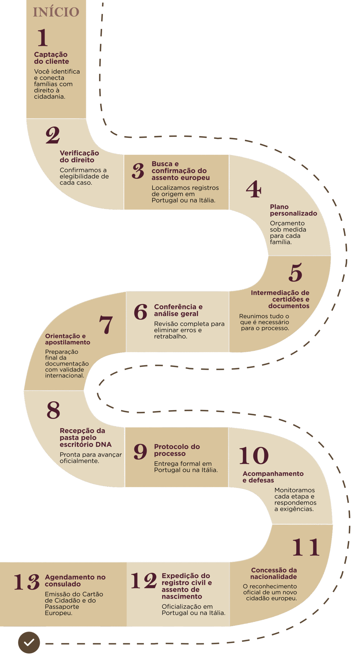Mais de 10 anos de experiência, quase 5 mil famílias atendidas e autoridade real em cidadania portuguesa e italiana.