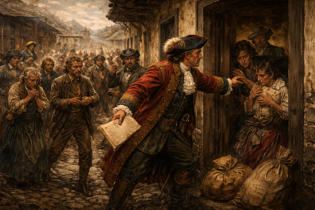 Imagine viver em uma cidade onde funcionários da Coroa poderiam bater à sua porta exigindo dinheiro ou ouro para compensar uma arrecadação que não havia atingido as expectativas do governo.