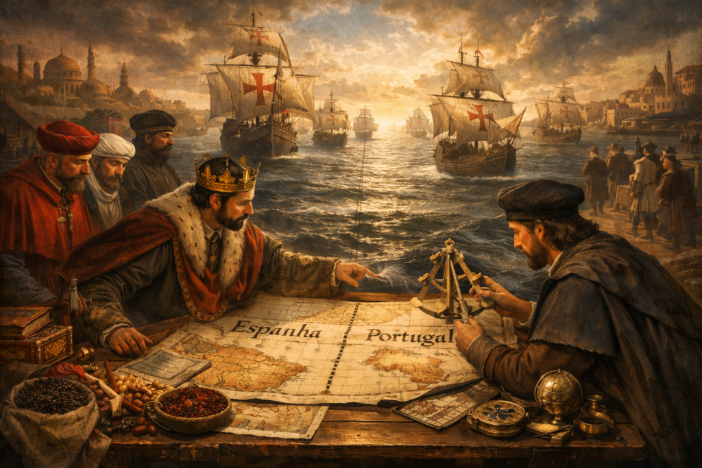 No início do século XVI, o mundo atravessava um dos períodos mais extraordinários de transformação da história humana. As grandes navegações não foram apenas um fenômeno europeu; foram, acima de tudo, uma obra histórica protagonizada por um povo específico: os portugueses. Situado na extremidade ocidental da Península Ibérica, voltado para o Atlântico e moldado por uma longa tradição marítima, o pequeno reino de Portugal tornou-se, ao longo do século XV, o grande laboratório da exploração oceânica.