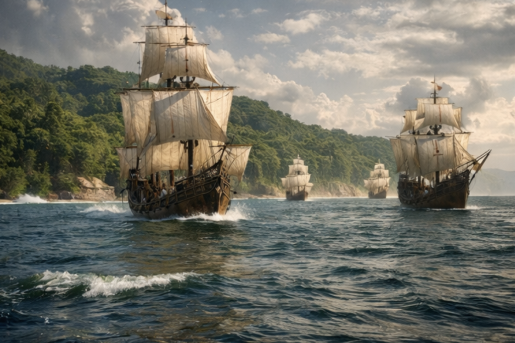 As caravelas avançavam lentamente, empurradas por ventos que às vezes pareciam bênçãos divinas e às vezes maldições imprevisíveis. O cheiro do mar impregnava as velas, os cabos, as roupas dos marinheiros. A madeira dos navios rangia durante a noite, como se o próprio oceano conversasse com aquelas embarcações frágeis que ousavam atravessá-lo.