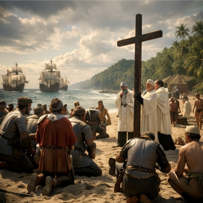 Enquanto a cerimônia acontecia, muitos indígenas observavam à distância. Para eles, aquele ritual era incompreensível. O que significava aquele símbolo? Por que aqueles estrangeiros se ajoelhavam diante de um objeto de madeira? Que tipo de espírito ou força estava sendo invocado ali?
