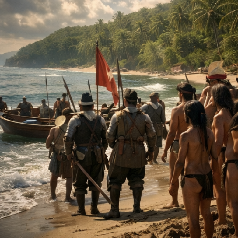 De um lado, navegadores vindos de um continente que há séculos desenvolvia cidades, monarquias, comércio internacional e tecnologia marítima avançada. De outro, povos adaptados a um território vasto e exuberante, com seus próprios códigos culturais e formas de sobrevivência.