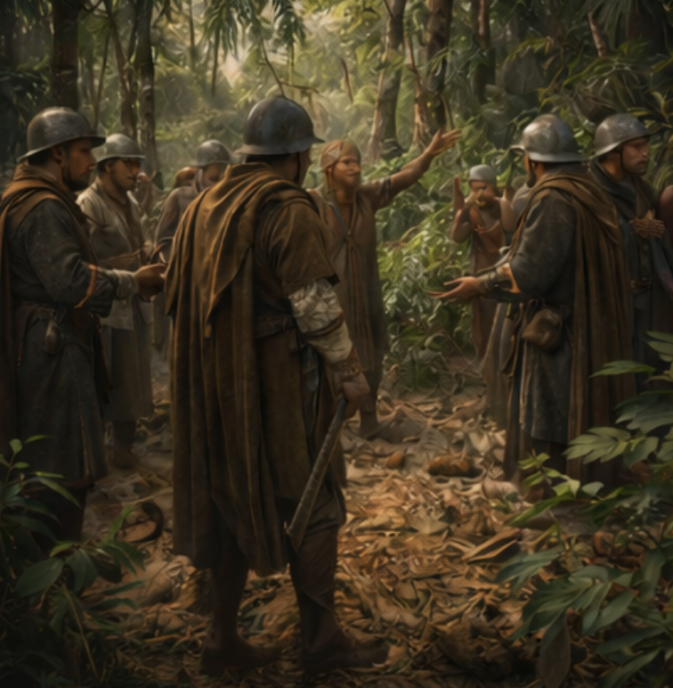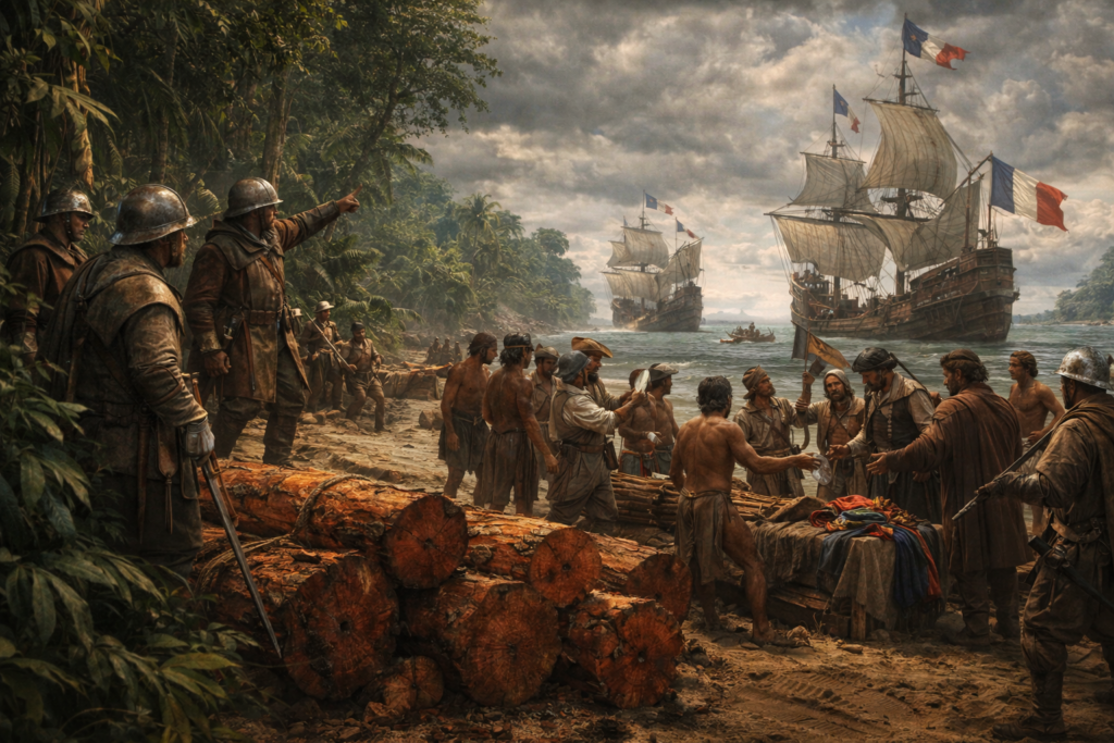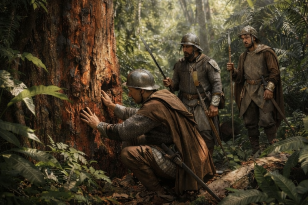A costa era coberta por uma mata tão densa que parecia respirar. O vento carregava sons desconhecidos: o grito de aves, o canto de insetos, o movimento constante das árvores tropicais. Para aqueles homens vindos da Europa — acostumados a campos cultivados, vilas muradas e igrejas de pedra — aquela paisagem era quase surreal.