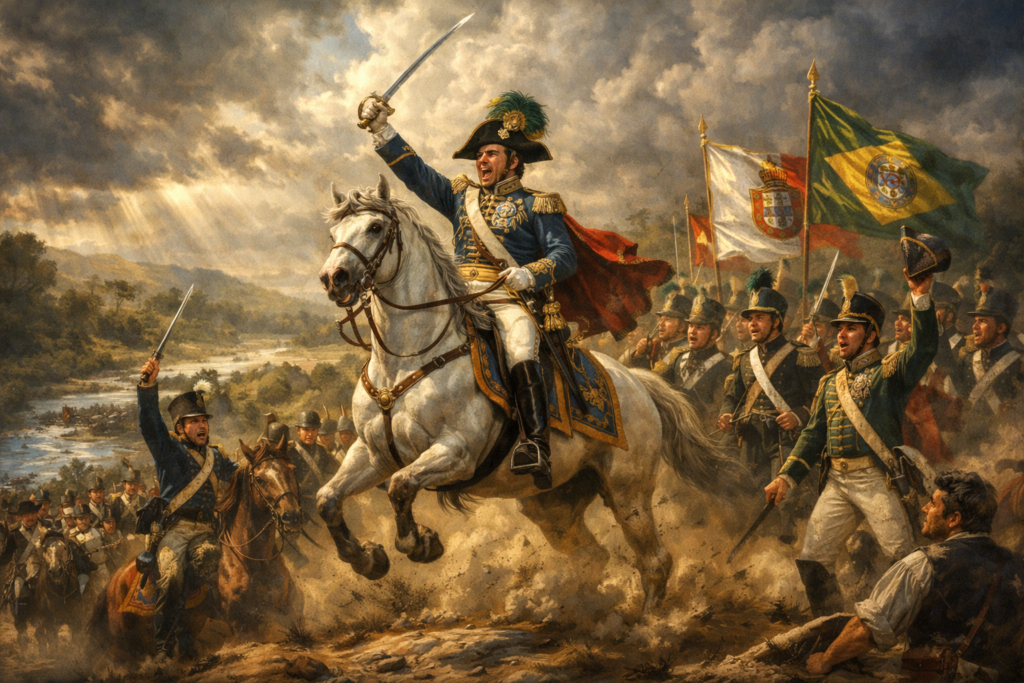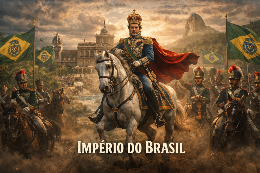 Ela foi conduzida pela própria monarquia que governava o território. O príncipe regente que representava a Coroa portuguesa tornou-se, ele próprio, o líder da separação. Poucos meses depois daquele momento às margens do Ipiranga, Dom Pedro seria coroado imperador do Brasil, dando origem a um dos episódios mais incomuns da história política das Américas.