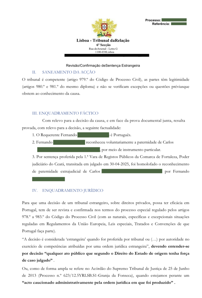 Quando um caso depende de Portugal reconhecer uma decisão proferida fora do país, tempo deixa de ser apenas prazo processual — tempo passa a ser destino. O que se regulariza hoje é o que libera amanhã: nacionalidade, averbações, reagrupamento familiar, sucessões, segurança jurídica, vida.