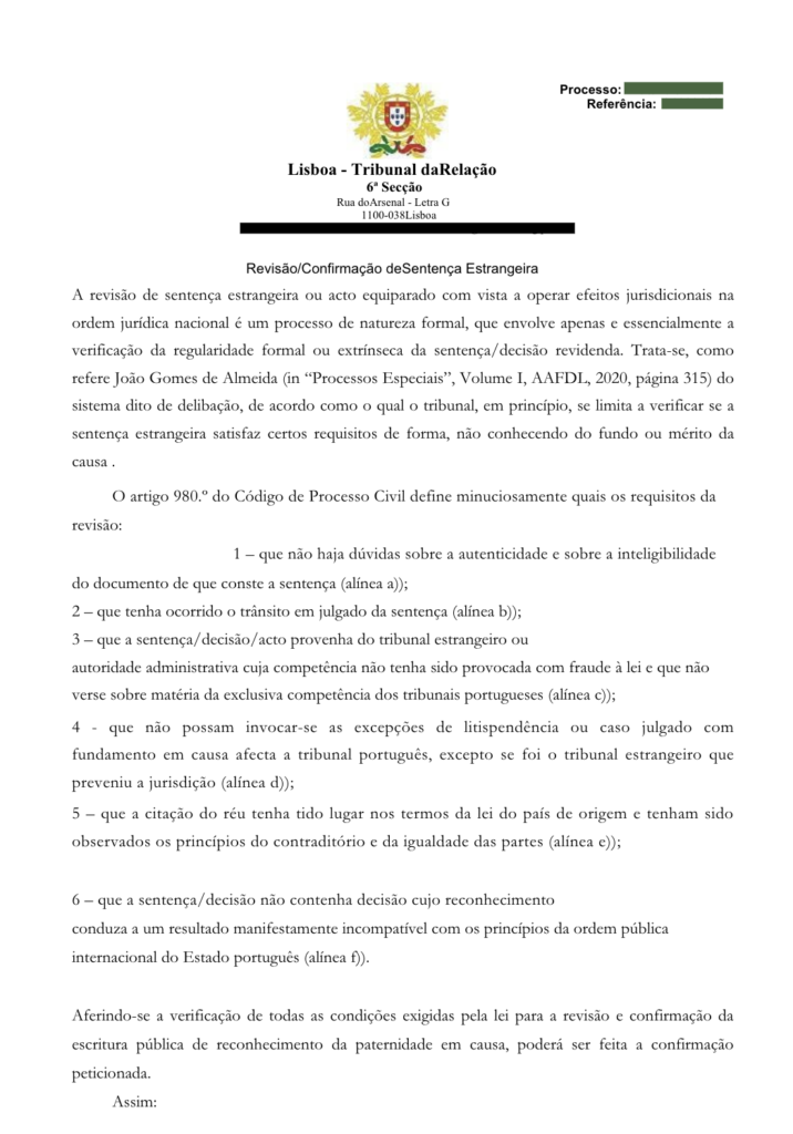 Por que a procuração do requerido acelera a revisão e confirmação de sentença estrangeira no Tribunal da Relação de Lisboa.
