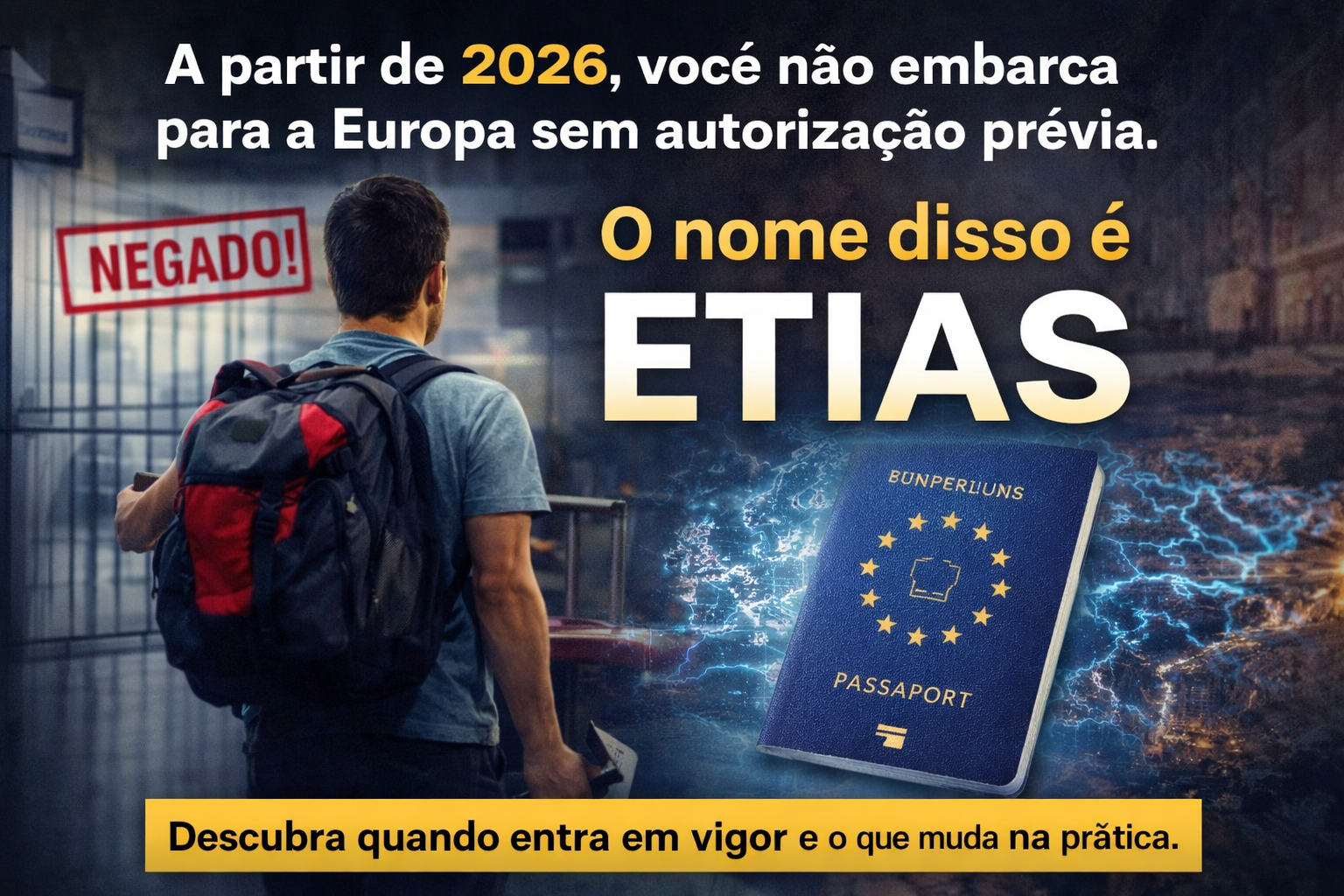 Veja o caso do ESTA 2026 – entrada na Europa para estrangeiros (cidadãos de fora da União Europeia), incluindo brasileiros.