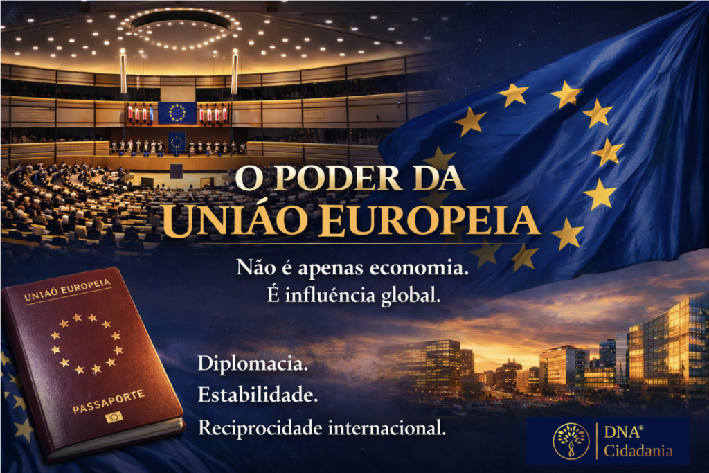 Quando falamos em “peso do passaporte europeu”, estamos falando do acúmulo histórico de credibilidade institucional. Estados que integram a União Europeia compartilham padrões comuns de governança, controle migratório, estabilidade jurídica e cooperação consular. Isso gera confiança internacional.